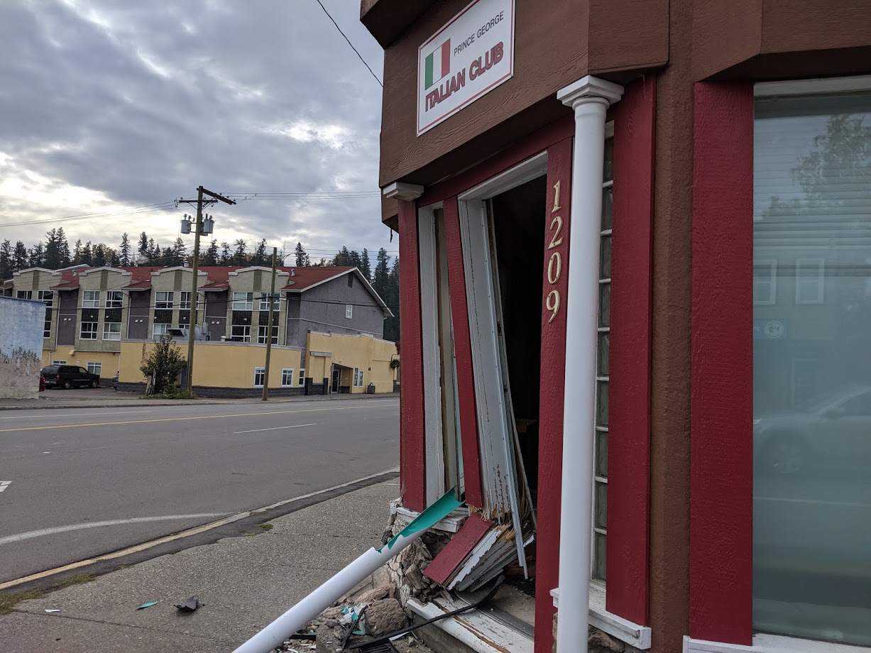 One of the vehicles involved made contact with the Prince George Italian Club, smashing in the front door and breaking the surrounding glass.