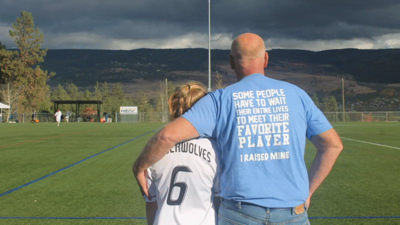 Even after both Kylie and Cassie had graduated from UNBC, Brad’s enthusiasm for Timberwolves Soccer never faded. During a visit to Prince George in the fall of 2022, Kylie was both surprised — and not at all surprised — to spot her dad encouraging and laughing with UNBC Men’s Soccer standout Michael Henman during his historic 19-goal season.