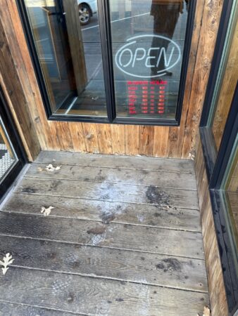 Through email, Foley shared photos from the downtown restaurant last week, showing a pile of ash and a burn mark outside of the back door, as well as a smaller pile of ash at the front door.