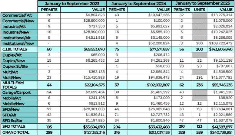 As of the end of September, the City has issued 328 building permits worth a combined $240.7 million so far this year.