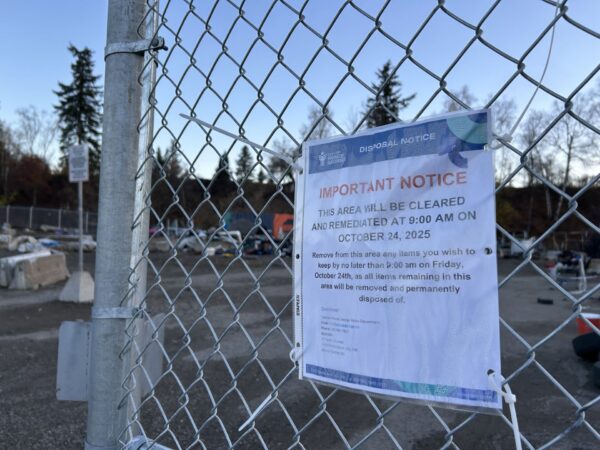 According to a notice posted outside of the encampment, the area will be cleared starting on Friday, October 24th at 9:00 am.