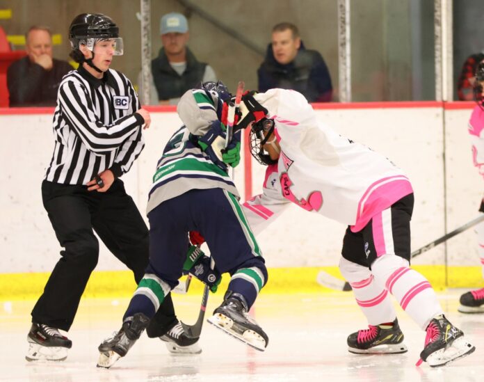 During Saturday’s Pink in the Rink Night, a power-play goal by Liam Shea was difference, giving the Thunderbirds a 3-2 victory.
