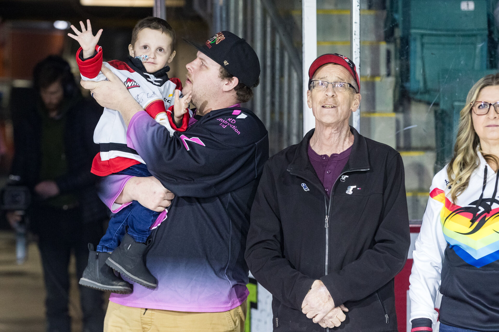 This included three-year-old Mavrik Turnbull, and seven-year-old Nixon, who got to be one of the Junior Cougars on the ice with the starting lineup.