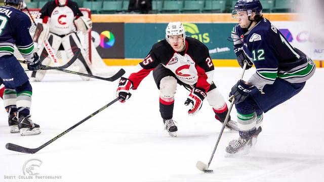 Nolan Volcan scored his 2nd goal of the game on a rebound just 34 seconds into overtime giving the Seattle Thunderbirds a 4-3 victory over the Cougars and a 4-game sweep.