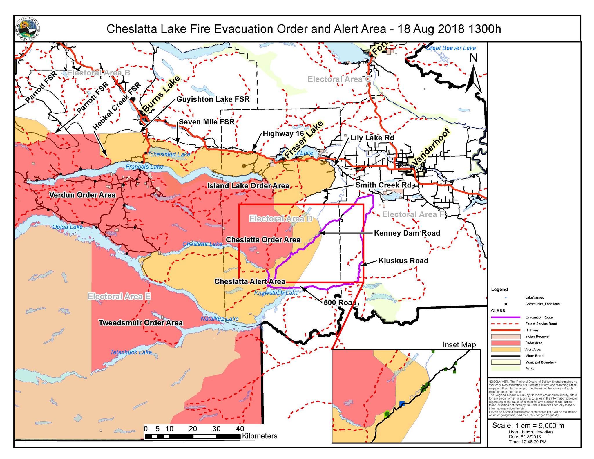 As a result, the Regional District of Bulkley-Nechako (RDBN) has issued two evacuations, including an ORDER for the north side of the Cheslaslie arm and an ALERT for the south side.